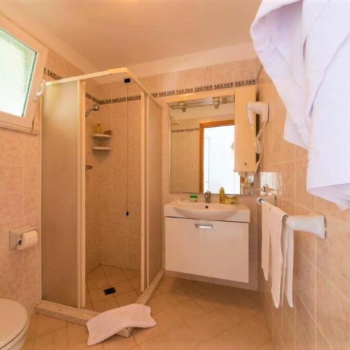 inside the rooms will find private bathroom with shower, hairdryer, fan.